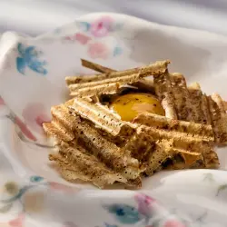 Далее — фуа-гра с обжаренными белыми грибами, грушей и крошкой выдержанного сыра. Блюдо дополняется хрустящими чипсами из блинов.