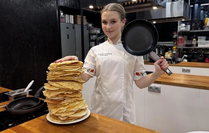 В Санкт-Петербурге студентка кулинарного колледжа установила мировой рекорд по количеству испеченных блинов. За час Александра Рогова испекла 199 блинов.