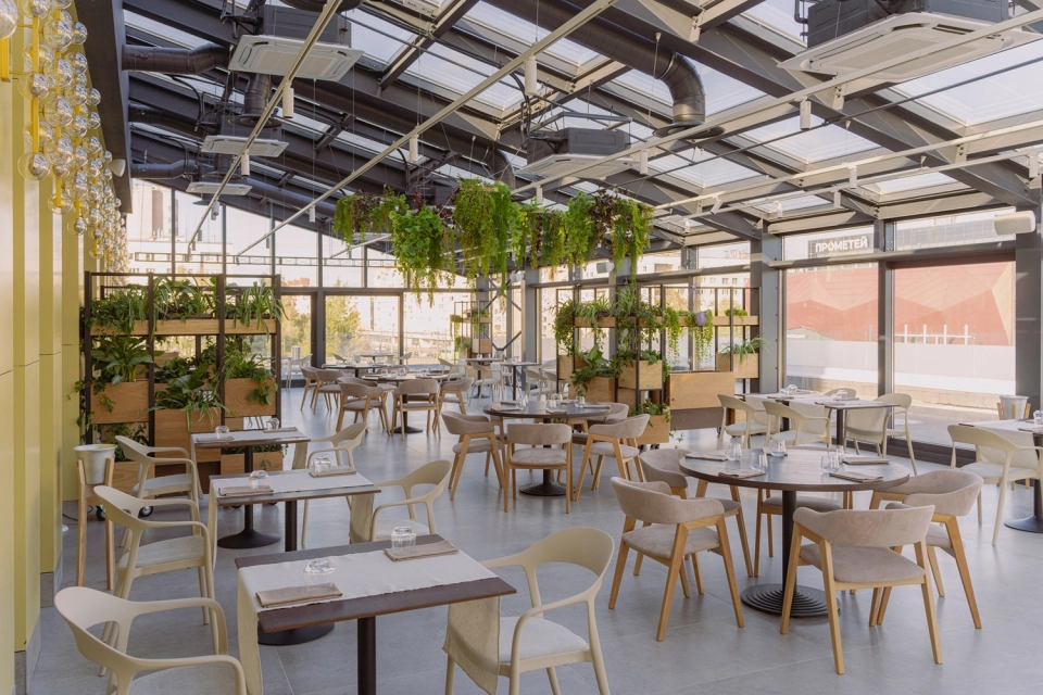 Новый панорамный ресторан от команды Nevesomost и Bistro44 рассчитан на 120 гостей.