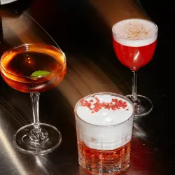 Lamponi Speciale — яркий и сочный коктейль с ромом, малиной, ликером мараскино и цитрусовым кордиалом; Bella Vita — легкий аперитивный на основе сливочного лимончелло, лемонграсса, сорбета и игристого; Segreto — «петушиный хвост» на основе трюфельного джина с нотами трав и цитрусов; а Grafico — самый крепкий, с джином на пармезане в основе, чинаром, сладким вермутом и какао.
