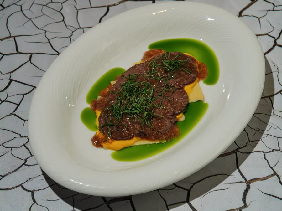 Куллама с конской вырезкой. В татарской гастрономии конина — продукт особый и праздничный: чистый вкус, высокая культура разделки и особое отношение к сырью. Для Петербурга конина остается редкостью: правильно приготовленное, тонкое по вкусу блюдо из конины в городе попробуешь не часто. В Regions делают кулламу с нежной конской вырезкой, привезенной из Татарстана, подчеркивая деликатность этого уникального мяса, поэтому куллама здесь — важный «мост» к подлинным культурным традициям Татарстана.