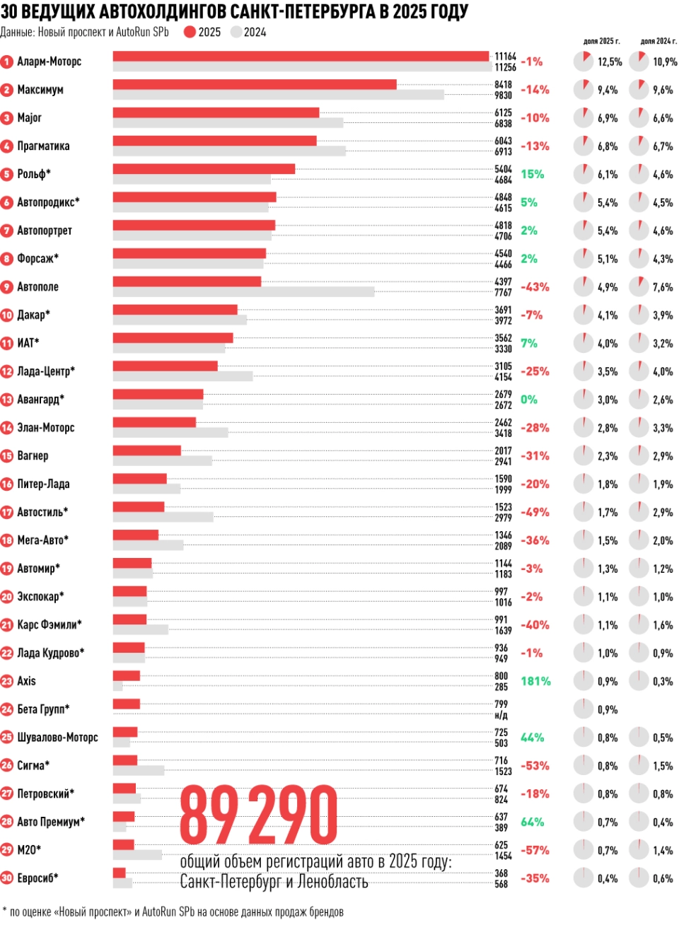 Топ-30 автомобильных холдинга Санкт-Петербурга по итогам 2025 года — по ссылке.