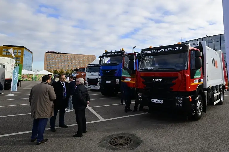 Российские грузовики-внедорожники и поезда на магнитной подушке припарковались перед Экспофорумом