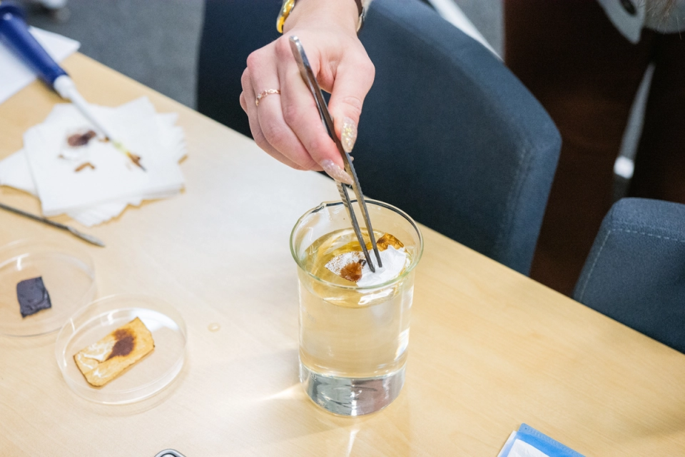 «Мы проверяли его действенность на нефти и на различных фракциях нефтепродуктов. Сорбция достаточно высокая. Для моторного масла — 40 грамм масла на грамм материала. А для сырой нефти — 20 грамм на грамм», — рассказала ведущий специалист сектора «Умные экотехнологии» Передовой инженерной школы СПбГУ Анастасия Носова.