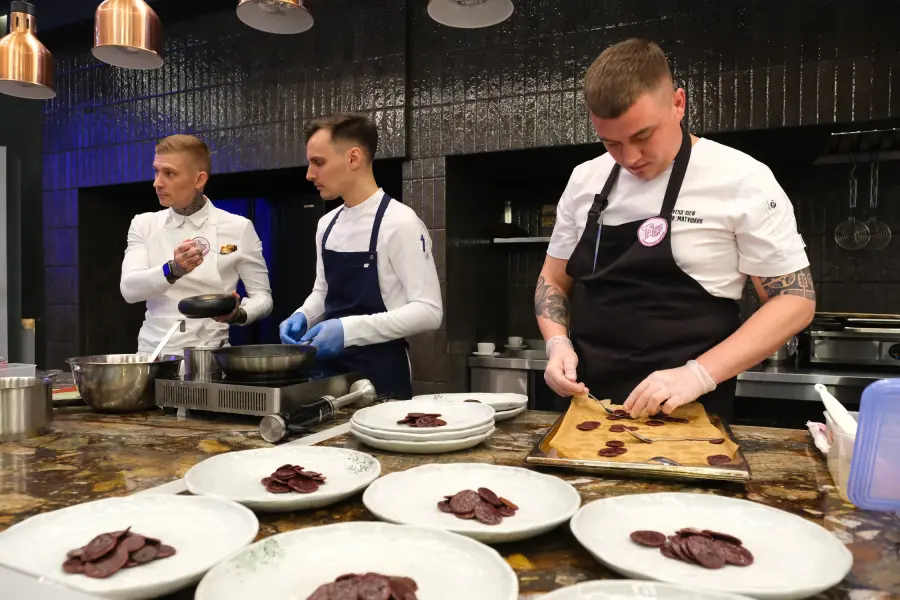 Каждый шеф-повар готовил два блюда — обязательное и фирменное. Обязательным были «Розовые блины от Арины Родионовны».